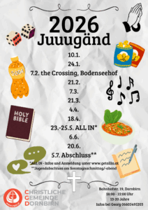 Wir treffen uns alle 2 Wochen zum Leben teilen, Spaß haben, einander und Gott besser kennen zu lernen. Sei dabei, wir freuen uns auf Dich!